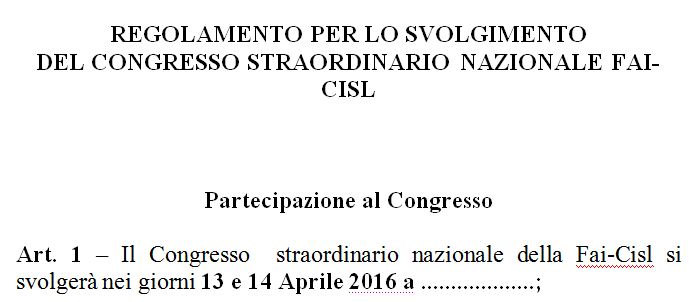 Il dottor Sbarra dell’Anas ha trasmesso alle strutture il regolamento per il congresso convocato per il13 e 14 aprile a “puntini puntini”.