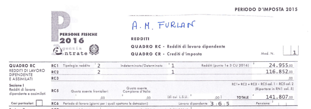 A partire dal 3 maggio 2006, quando comincia il carnevale bonanniano, la questione salariale dei segretari confederali della Cisl viene risolta alla radice. Tanto che dieci anni dopo il segretario generale della Cisl, la signora Anna Maria, pubblica sul sito della Confederazione un estratto da una dichiarazione dei redditi che dà una bella cifra: 141.807 €.